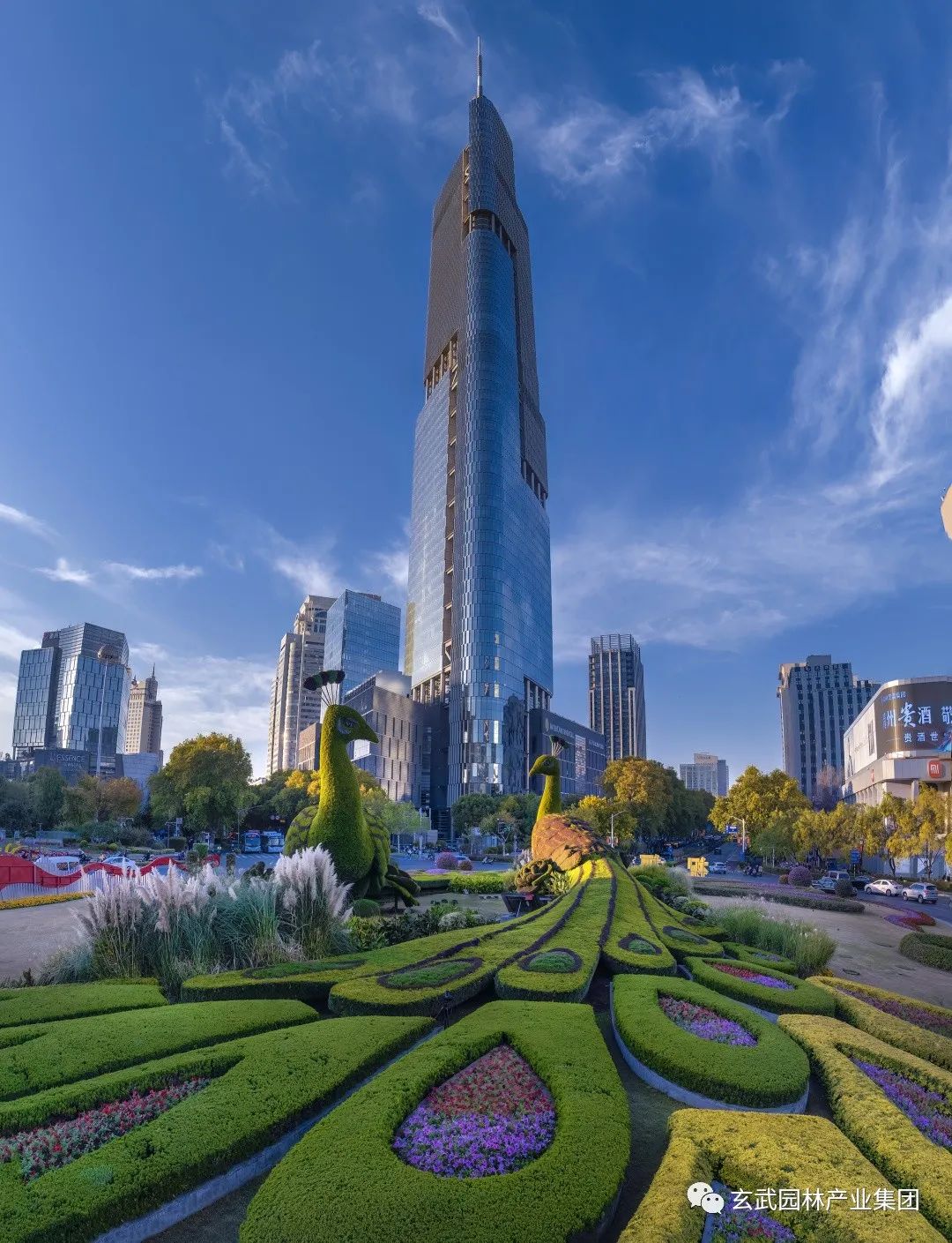 主題綠雕“歡樂祥和”在充分考慮鼓樓廣場樞紐交通功能和周邊建筑景觀融合基礎上,把握“寓意鮮明”、“綠色生態(tài)”的原則,選定孔雀作為綠雕形象主題,寓意著南京歡樂祥和、國泰民安、和諧美好的都市面貌。